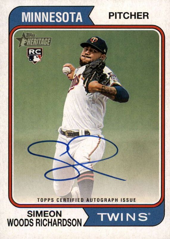 This card is 1 of 2 Simeon Woods Richardson's card variations in the 2023 Topps Heritage set being tracked by Sports Card Investor, including Real One Autographs - Red Ink /74.