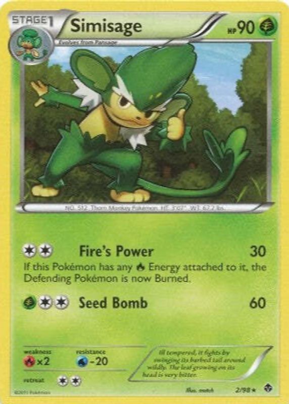 Pokemon 2011 Near Mint NM Simisage Emerging Powers Rare 2/98 Card
