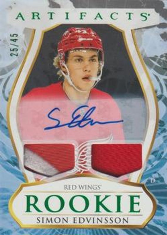 Simon Edvinsson 2023 Upper Deck Artifacts #187 Auto - Material Emerald /15 Rookie RAW
