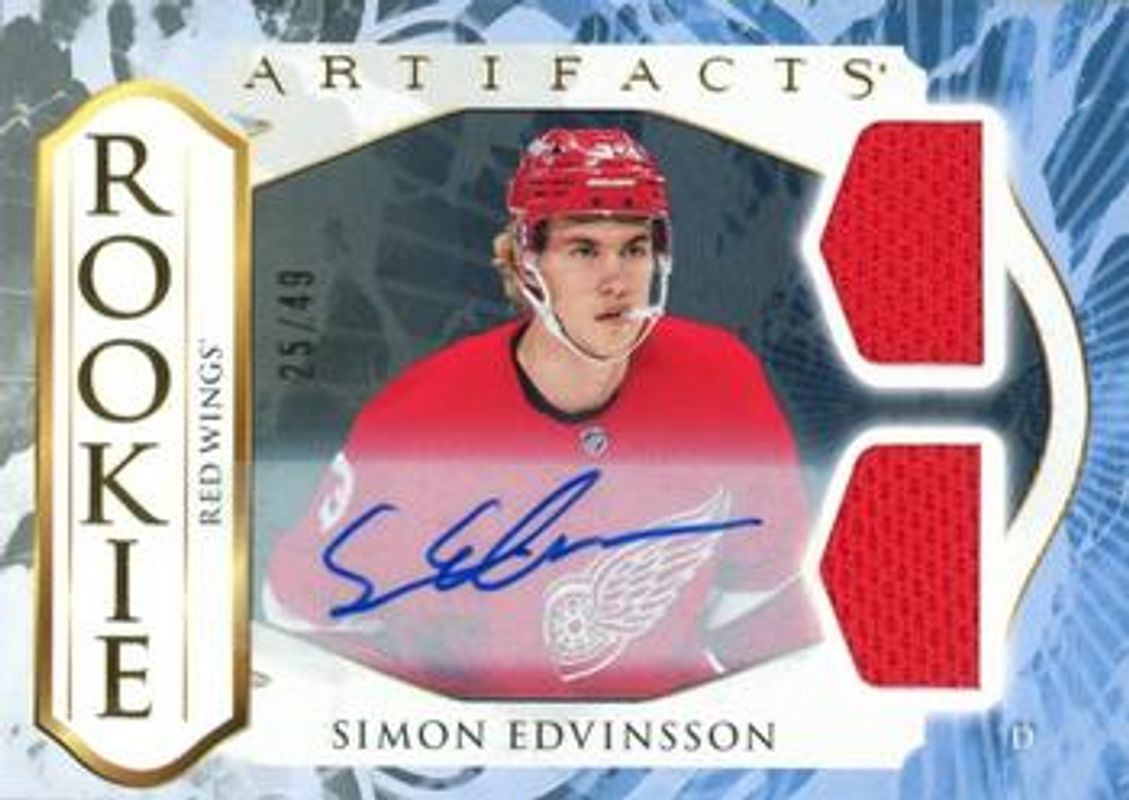 Simon Edvinsson 2023 Upper Deck Artifacts #187 Horizontal Auto Material - Gold /8 Rookie RAW Price Guide