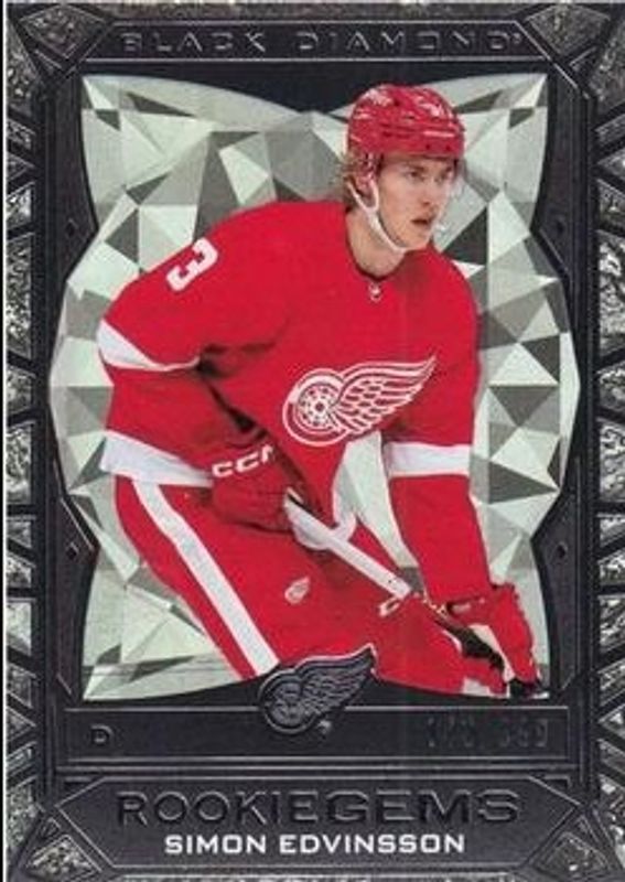 The Simon Edvinsson 2023 Upper Deck Black Diamond #RG-SE Rookie Gems /399 card is 1 of 66 Simon Edvinsson's card variations in the 2023 Upper Deck Black Diamond set being tracked by Sports Card Investor, including Base /349, Red /75, Blue /25, Pure Black Auto /25, and Green /10.