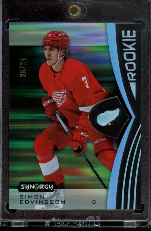 The Simon Edvinsson 2023 Upper Deck Synergy #125 Base /24 Rookie card is 1 of 50 Simon Edvinsson's card variations in the 2023 Upper Deck Synergy set being tracked by Sports Card Investor, including Red, Red Codes, Purple /99, Gold /25, and Barnburners!.