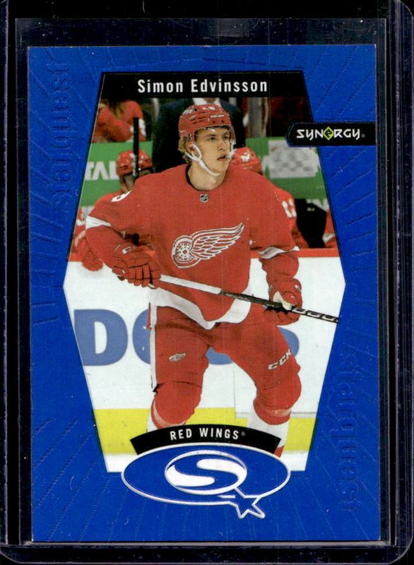 The Simon Edvinsson 2023 Upper Deck Synergy #SQ-8 Star Quest ’98 /199 Rookie card is 1 of 50 Simon Edvinsson's card variations in the 2023 Upper Deck Synergy set being tracked by Sports Card Investor, including Base /24, Red, Red Codes, Purple /99, and Gold /25.