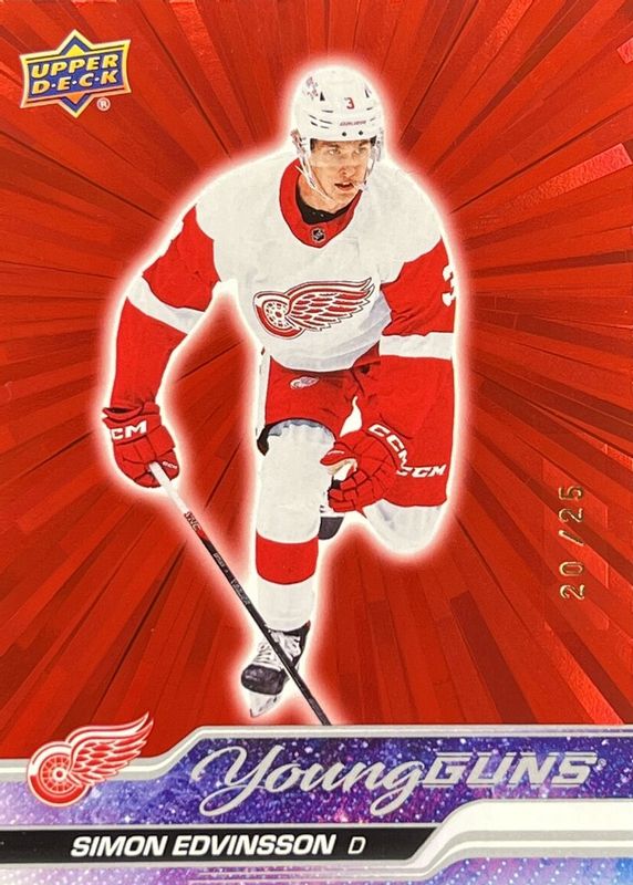 2023-24 Upper Deck Young Guns Outburst RED #228 Simon Edvinsson Detroit 13/25