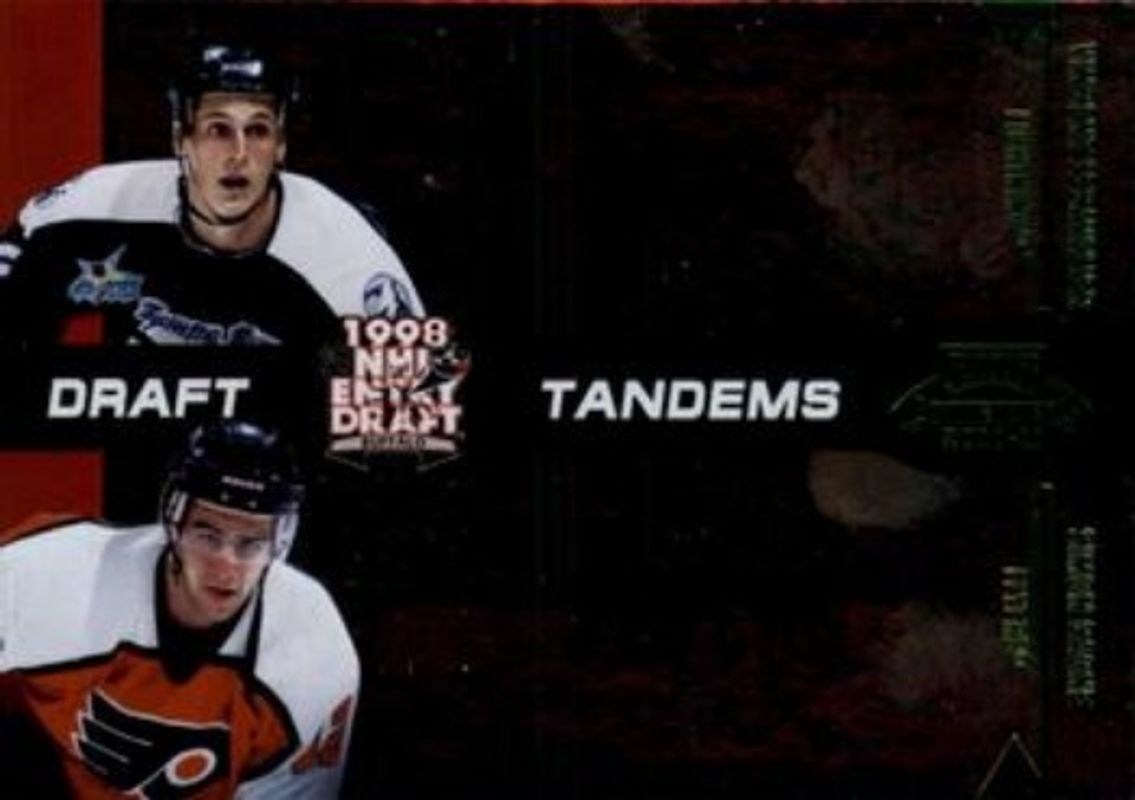 The Simon Gagne / Vincent Lecavalier 2010 Contenders #13 Draft Tandems Green /50 card is 1 of 4 Simon Gagne / Vincent Lecavalier's card variations in the 2010 Contenders set being tracked by Sports Card Investor, including Draft Tandems, Draft Tandems - Purple /100, and Draft Tandems Autographs /10.