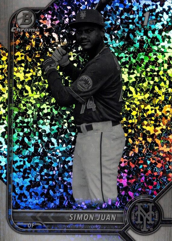 This card is 1 of 47 Simon Juan's card variations in the 2022 Bowman Chrome set being tracked by Sports Card Investor, including Prospects (1st), Prospects - Shimmer Refractor (1st), Prospects - Refractor /499 (1st), Prospects - Speckle Refractor /299 (1st), and Prospects - Purple Refractor /250 (1st).