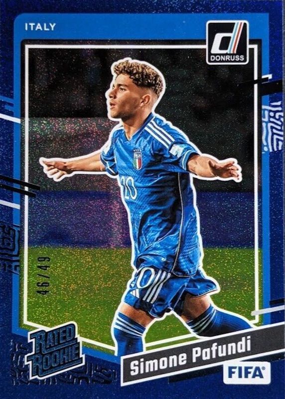 2023-24 Panini Donruss Soccer FIFA Simone Pafundi #198 RC Rated Rookie Blue /49
