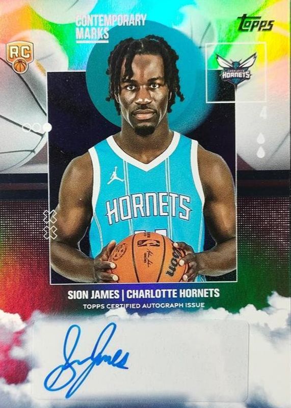 2025-26 Topps Sion James RC Auto Contemporary Marks Rainbow Foil Hornets #CM-SJ