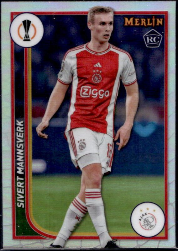 The Sivert Mannsverk 2023 Topps Merlin Chrome UEFA Club Competitions #7 Refractor card is 1 of 44 Sivert Mannsverk's card variations in the 2023 Topps Merlin Chrome UEFA Club Competitions set being tracked by Sports Card Investor, including Base, Aqua Prism Refractor, Vintage Merlin Refractor, Neon Green Shimmer Refractor /399, and Rose Gold Shimmer Refractor /299.
