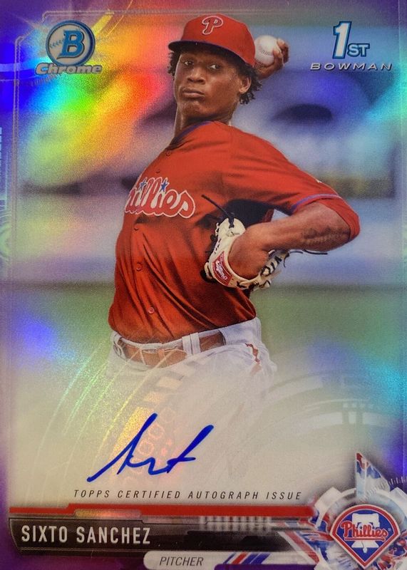 Best Prices Available For Sale of Sixto Sanchez 2017 Bowman Chrome #CPA-SS Prospect Auto - Purple Refractor /250 (1st)
