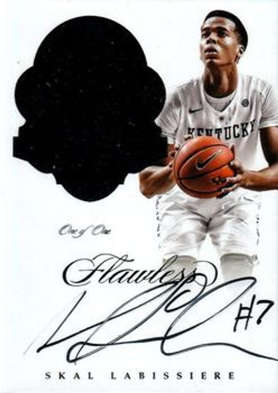 The Skal Labissiere 2017 Flawless Collegiate #TLS-SL Team Logo Signatures - Black /1 card is 1 of 10 Skal Labissiere's card variations in the 2017 Flawless Collegiate set being tracked by Sports Card Investor, including Team Logo Signatures /25, 2016 Base Gems Update /20, Team Logo Signatures - Sapphire /20, 2016 Base Gems Update - Ruby /15, and 2016 Base Gems Update - Sapphire /10.
