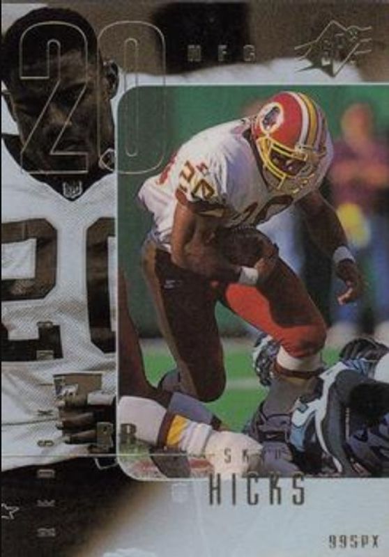 The Skip Hicks 1999 SPx #89 Base /1999 card is 1 of 3 Skip Hicks' card variations in the 1999 SPx set being tracked by Sports Card Investor, including Radiance /100, and Spectrum /1.
