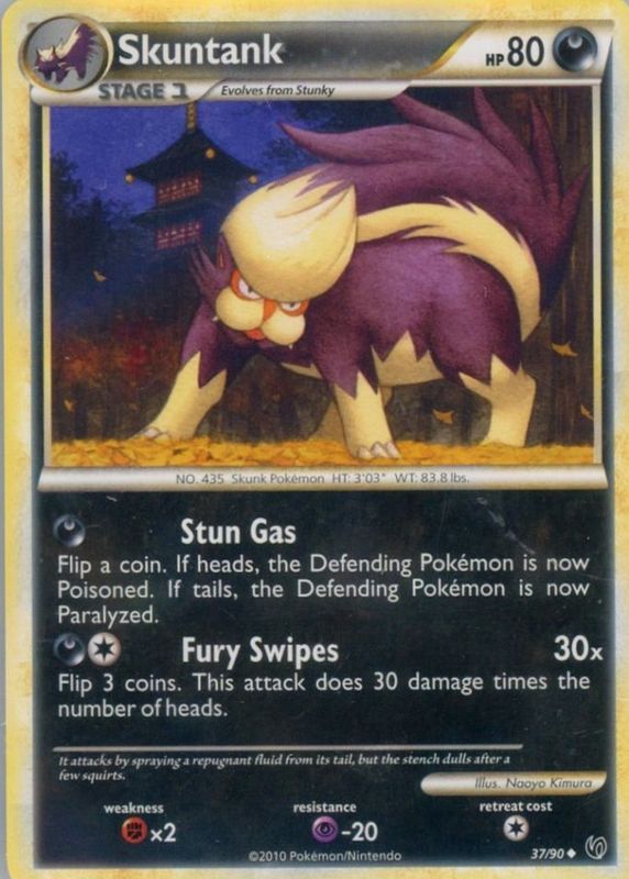 The Skuntank 2010 HeartGold & SoulSilver: Undaunted #37/90 Base card in Raw TCG (Lightly Played) condition has moved up $0.50 (+33.6%) in the last 30 days and was last sold for $1.99 .