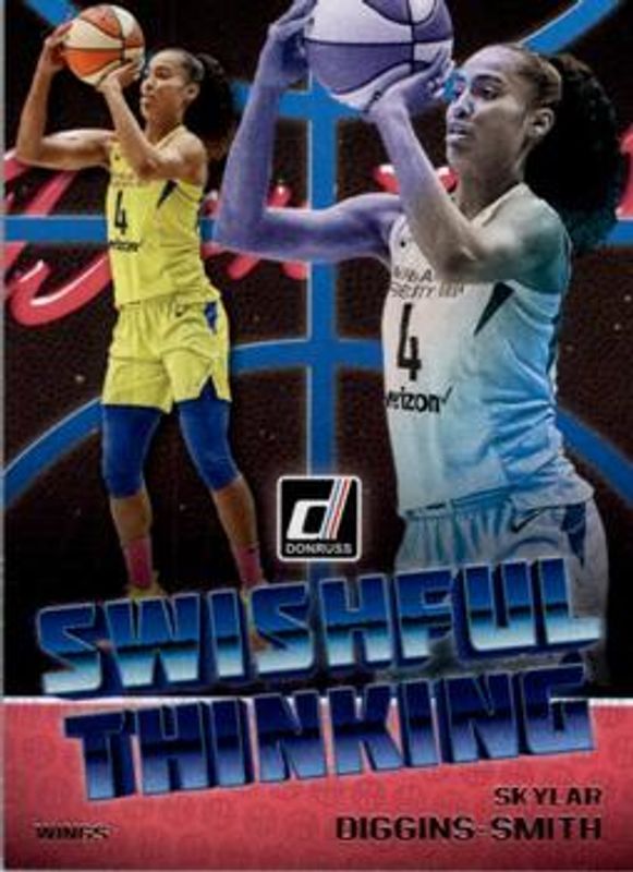 The Skylar Diggins-Smith 2019 Donruss WNBA #10 Swishful Thinking card is 1 of 39 Skylar Diggins-Smith's card variations in the 2019 Donruss WNBA set being tracked by Sports Card Investor, including Base, Optic, Optic Holo, Silver Press Proof /199, and Purple Press Proof /99.