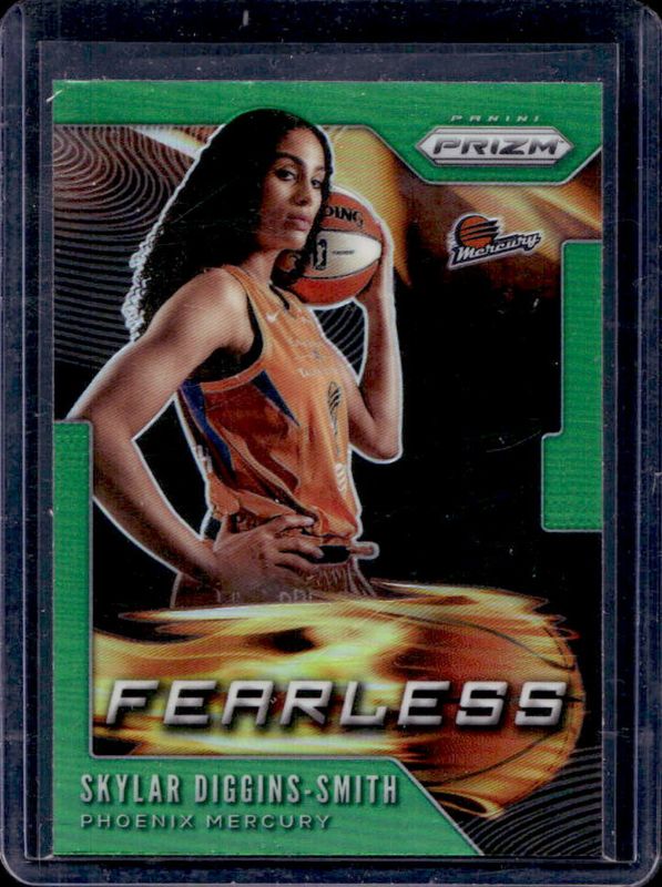 The Skylar Diggins-Smith 2020 Prizm WNBA #20 Fearless - Green card is 1 of 60 Skylar Diggins-Smith's card variations in the 2020 Prizm WNBA set being tracked by Sports Card Investor, including Base, Green, Green Ice, Hyper, and Ice.