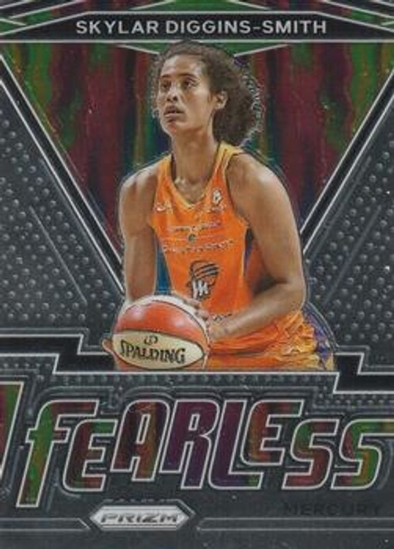 The Skylar Diggins-Smith 2021 Prizm WNBA #15 Fearless card is 1 of 56 Skylar Diggins-Smith's card variations in the 2021 Prizm WNBA set being tracked by Sports Card Investor, including Base, Green, Green Ice, Hyper, and Ice.