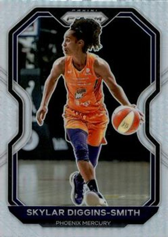 The Skylar Diggins-Smith 2021 Prizm WNBA #64 Silver card is 1 of 56 Skylar Diggins-Smith's card variations in the 2021 Prizm WNBA set being tracked by Sports Card Investor, including Base, Green, Green Ice, Hyper, and Ice.