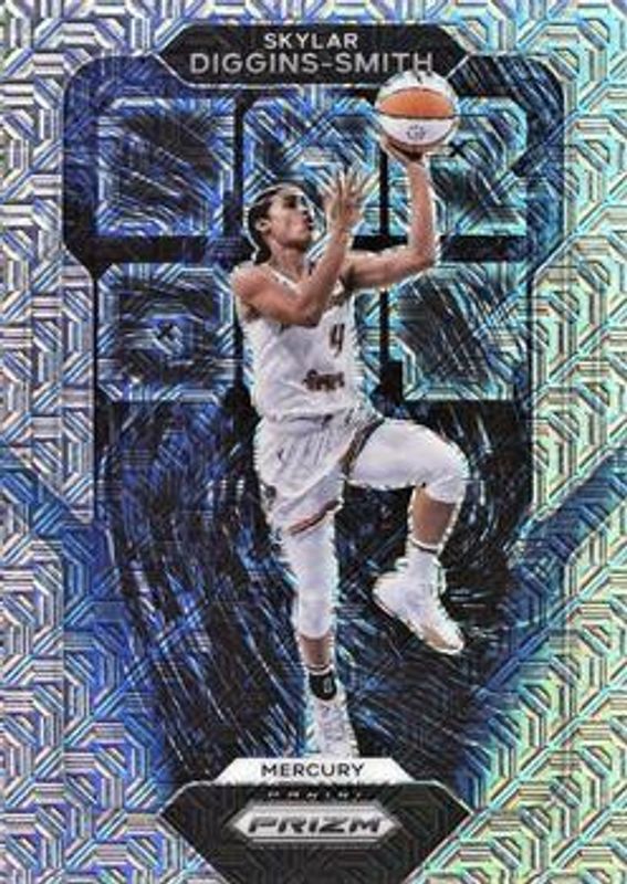 The Skylar Diggins-Smith 2022 Prizm WNBA #1 Far Out - Mojo /25 card is 1 of 64 Skylar Diggins-Smith's card variations in the 2022 Prizm WNBA set being tracked by Sports Card Investor, including Base, Green, Green Ice, Hyper, and Ice.