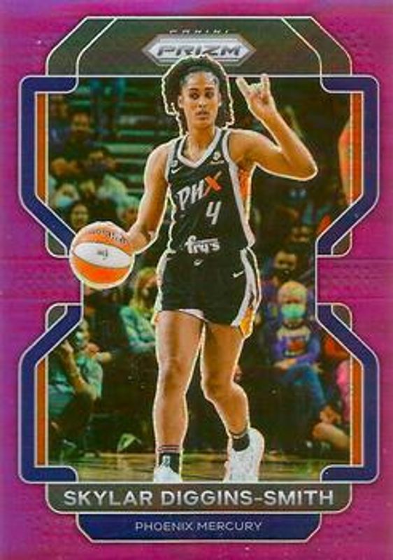 The Skylar Diggins-Smith 2022 Prizm WNBA #104 Purple /99 card is 1 of 64 Skylar Diggins-Smith's card variations in the 2022 Prizm WNBA set being tracked by Sports Card Investor, including Base, Green, Green Ice, Hyper, and Ice.