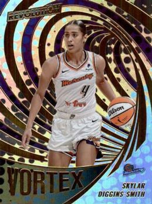 The Skylar Diggins-Smith 2022 Revolution WNBA #19 Vortex card is 1 of 18 Skylar Diggins-Smith's card variations in the 2022 Revolution WNBA set being tracked by Sports Card Investor, including Base, Astro, Fractal, Galactic, and Groove.