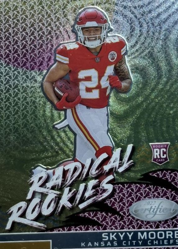 The Skyy Moore 2022 Certified #RAD-16 Radical Rookies /(SSP) card in Raw condition has not changed in price in the last 30 days and was last sold for $1.50 .
