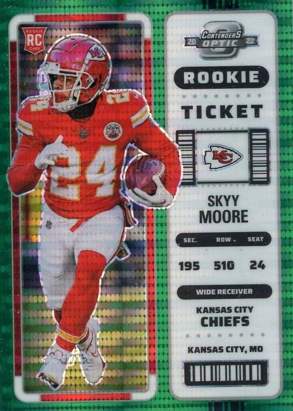2022 PANINI CONTENDERS OPTIC SKYY MOORE GREEN PULSAR ROOKIE #91 23/30 CHIEFS
