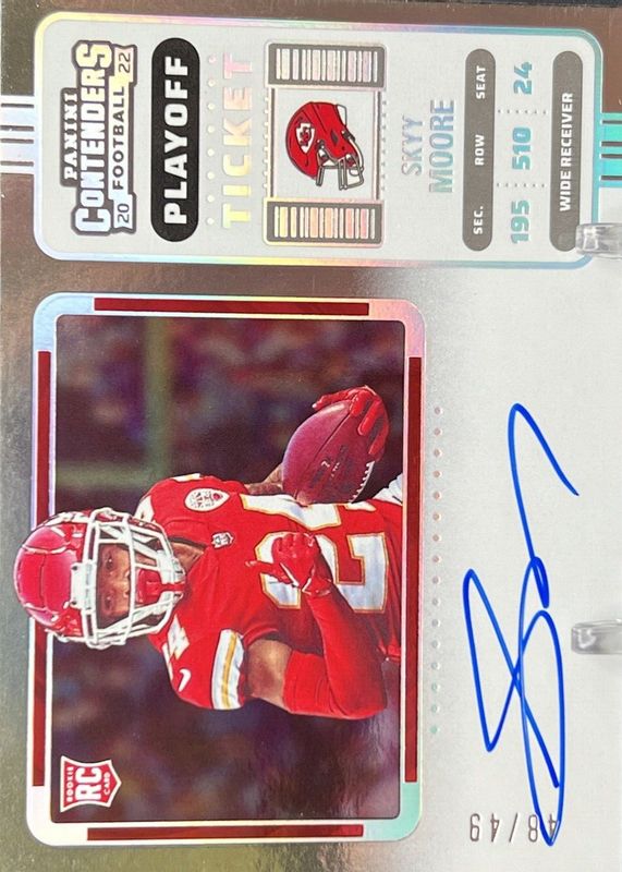 2022 Contenders Skyy Moore RC Playoff Ticket ON CARD AUTO Variation #’d/49