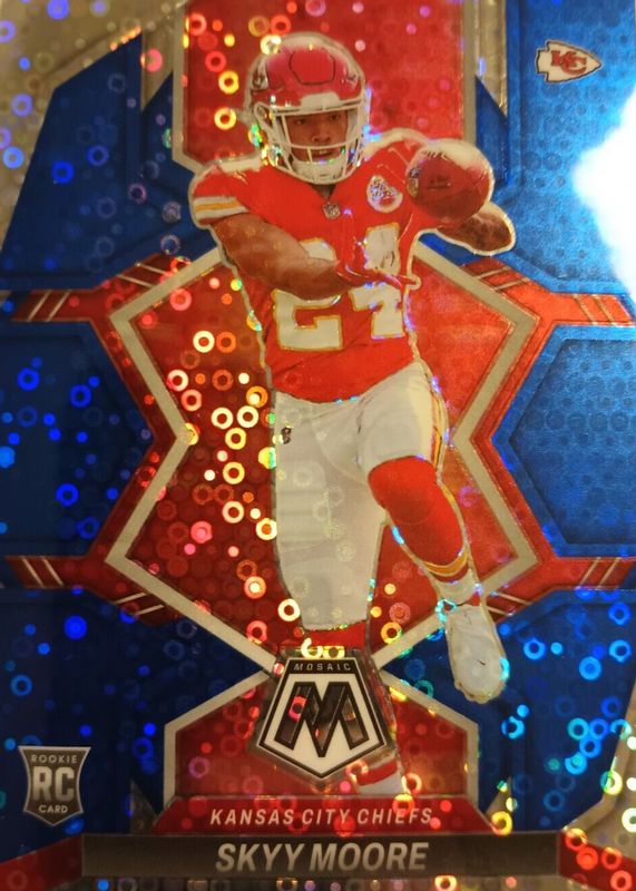 The Skyy Moore 2022 Mosaic #319 No Huddle Blue /75 Rookie card in Raw condition has not changed in price in the last 30 days and was last sold for $2.00 .