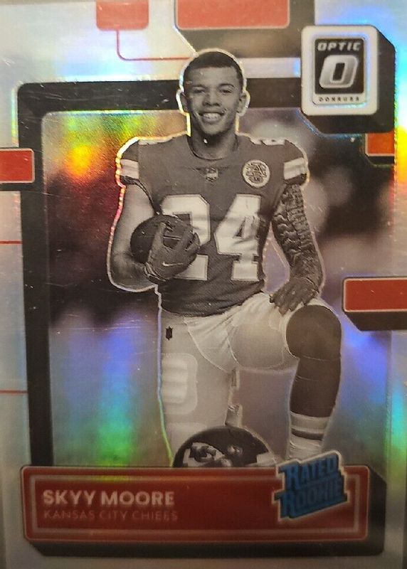 The Skyy Moore 2022 Optic #224 Holo Variation Rookie card in Raw condition has not changed in price in the last 30 days and was last sold for $2.99 .