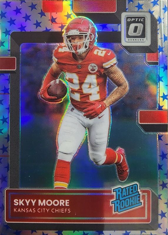 BLUE STARS! Skyy Moore Rated Rookie 2022 NFL Donruss Optic #224 KC Chiefs