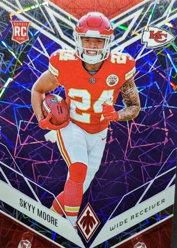 The Skyy Moore 2022 Phoenix #124 Purple Lazer /99 Rookie card in Raw condition has not changed in price in the last 30 days and was last sold for $0.99 .