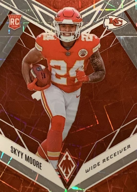 The Skyy Moore 2022 Phoenix #124 Red Lazer (Rookie) /150 card in Raw condition has not changed in price in the last 30 days and was last sold for $0.99 .