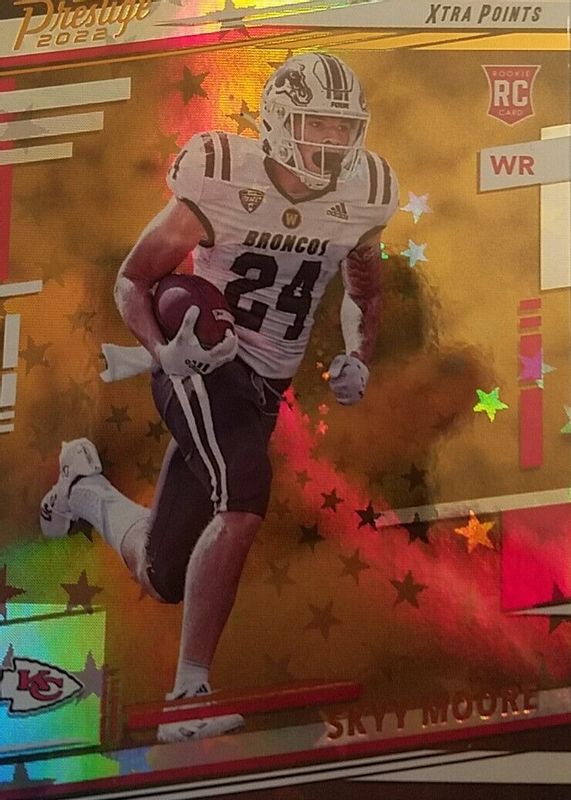 This card is 1 of 24 Skyy Moore's card variations in the 2022 Prestige set being tracked by Sports Card Investor, including Base, Xtra Points Diamond, Xtra Points Dots, Xtra Points Galaxy, and Xtra Points Sunburst.