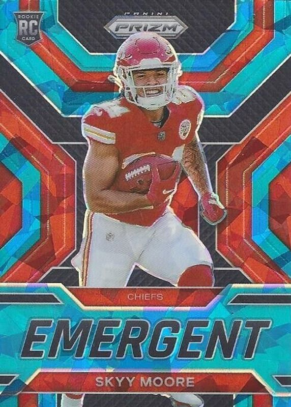 2022 Prizm PRIZM Emergent Blue Ice, Skyy Moore ROOKIE /99 KC CHIEFS WR SP