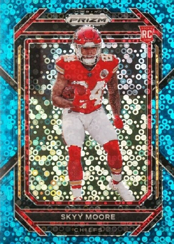 The Skyy Moore 2022 Prizm #331 No Huddle Blue /79 Rookie card in Raw condition has not changed in price in the last 30 days and was last sold for $6.99 .