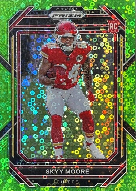 The Skyy Moore 2022 Prizm #331 No Huddle Neon Green /5 Rookie card in Raw condition has not changed in price in the last 30 days and was last sold for $30.00 .