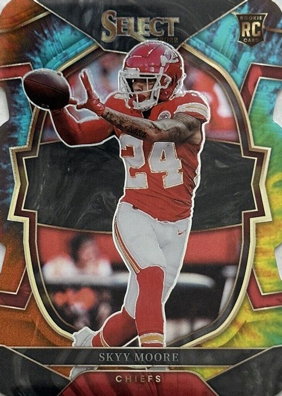 The Skyy Moore 2022 Select #21 Concourse Tie-Dye Die-Cut /25 Rookie card in Raw condition has not changed in price in the last 30 days and was last sold for $54.99 .