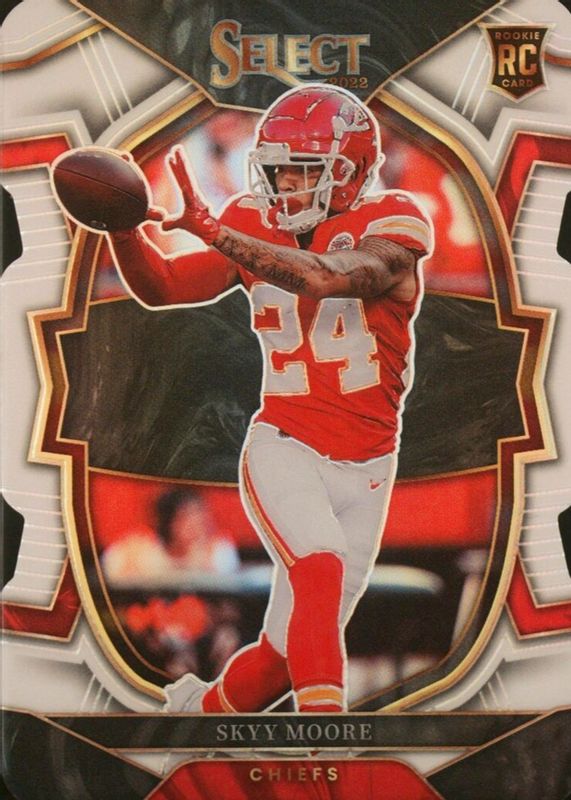 The Skyy Moore 2022 Select #21 Concourse White Die-Cut /99 Rookie card in Raw condition has moved down -$0.76 (-43.2%) in the last 30 days and was last sold for $1.00 .