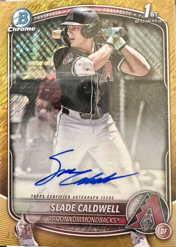 2025 Bowman 1st Chrome Slade Caldwell Auto GOLD SHIMMER REFRACTOR SP /50