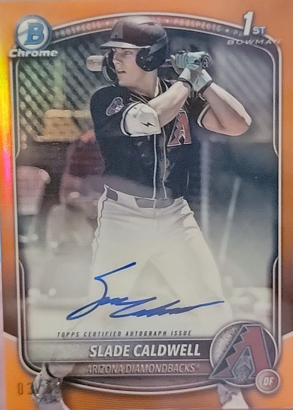 Slade Caldwell 2025 Bowman Chrome 1st Auto /25 Orange Refractor CPA-SC Arizona