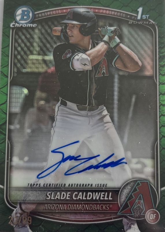2025 Bowman Chrome Prospect Auto Slade Caldwell #CPA-SC Green Reptilian /99 (Z)