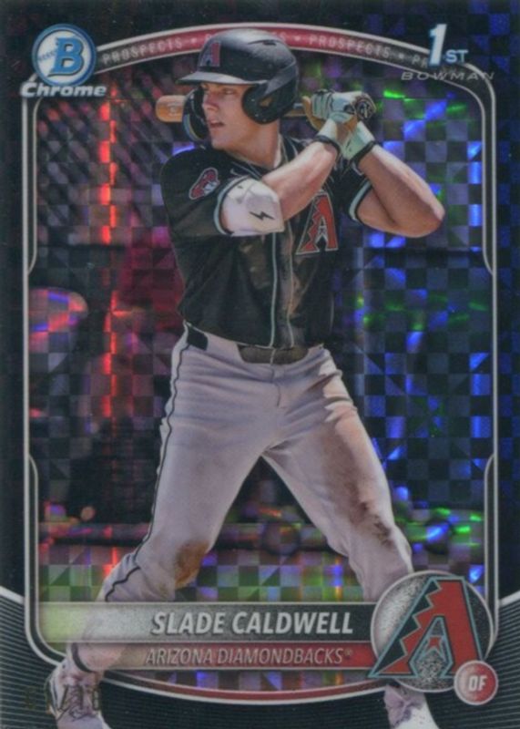 This card is 1 of 117 Slade Caldwell's card variations in the 2025 Bowman set being tracked by Sports Card Investor, including Chrome Prospects (1st), Prospects (1st), Chrome Prospects - Gumball Refractor (1st), Chrome Prospects - Mini Diamond Refractor (1st), and Chrome Prospects - Peanuts Refractor (1st).