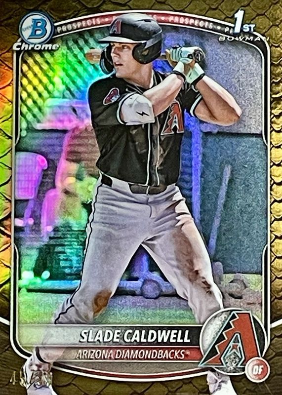Slade Caldwell 2025 Bowman #BCP-21 Chrome Prospects - Reptilian Gold Refractor /50 (1st) RAW Price Guide