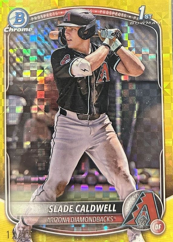 Slade Caldwell 2025 Bowman #BCP-21 Chrome Prospects - Yellow Geometric Refractor /75 (1st) RAW Price Guide