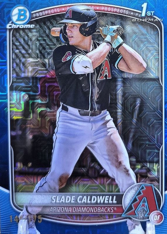 The Slade Caldwell 2025 Bowman Mega Box #BCP-21 Chrome Prospects - Navy Refractor /175 (1st) card in Raw condition has not changed in price in the last 30 days and was last sold for $15.50 .