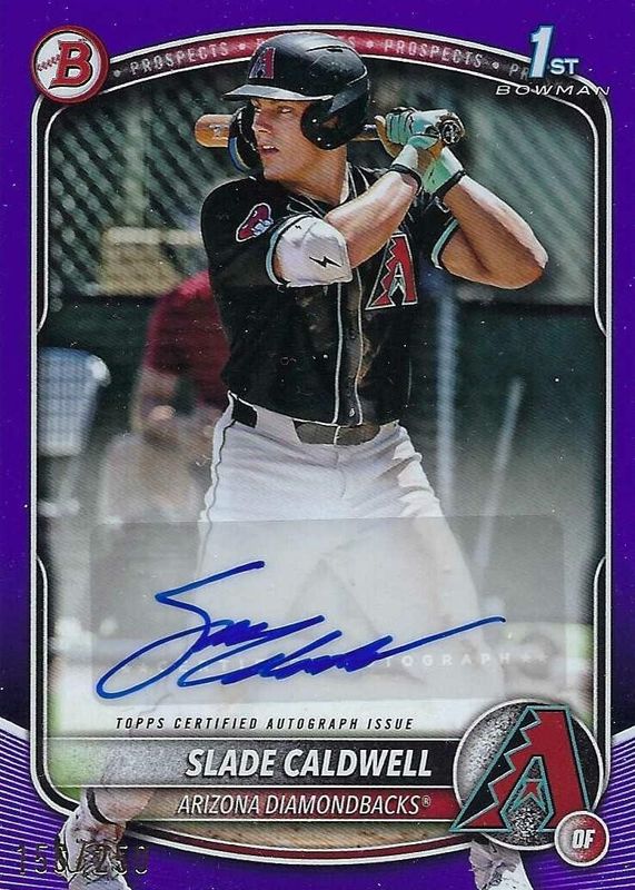 2025 Bowman 1st Slade Caldwell Purple Parallel Auto /250 Rookie RC DBacks SP