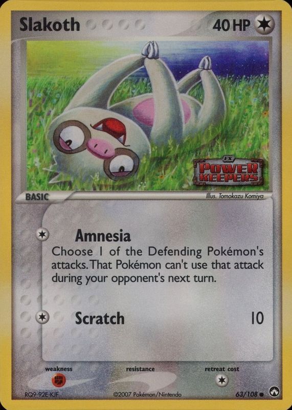 Pokémon TCG Slakoth 63/108 EX Power Keepers Reverse Holo Rare Stamped 2007