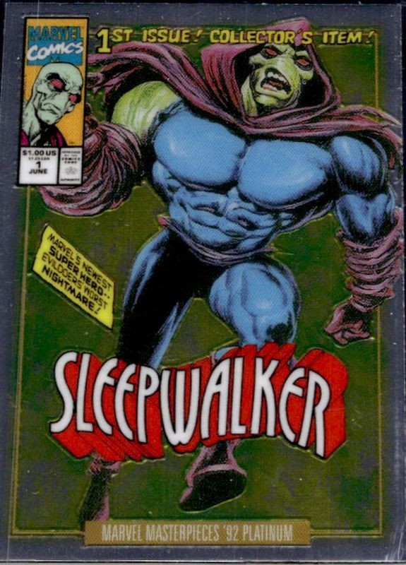 The Sleepwalker 2024 Upper Deck Marvel Masterpieces '92 Platinum #89-V Variant Cover card is 1 of 38 Sleepwalker's card variations in the 2024 Upper Deck Marvel Masterpieces '92 Platinum set being tracked by Sports Card Investor, including Base, Blue Traxx, Canvas, Clear Cut, and Emerald Surge.