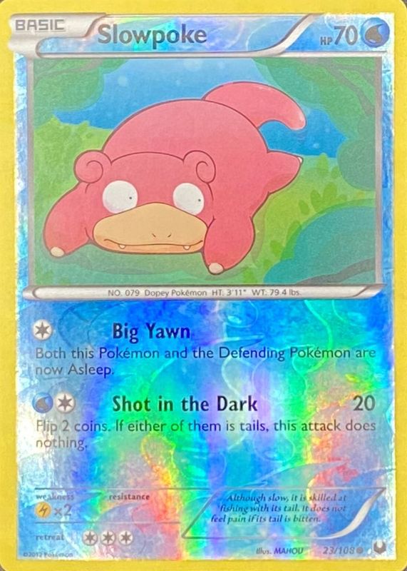 Slowpoke 2012 Black & White: Dark Explorers #023/108 Reverse Holo RAW TCG (LIGHTLY PLAYED) Price Guide