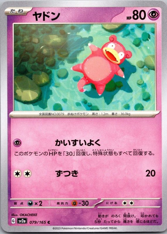 The Slowpoke 2023 Japanese Scarlet & Violet: 151 #079/165 Base card in Raw TCG (Near Mint) condition has not changed in price in the last 30 days and was last sold for $1.10 .